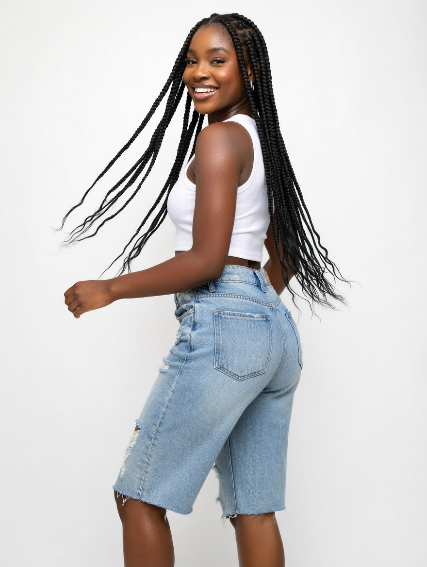 Step into effortless style with our Ladies Jort Jeans — the ultimate warm-weather essential every fashion-forward woman needs in her wardrobe. Designed for a flattering fit that hugs your curves in all the right places, these jorts blend bold street style with everyday comfort.